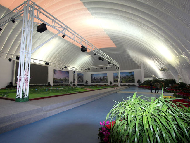 In addition to practical performance, the supporting membrane Pavilion incorporates modern high-tech products, such as solar panels, intelligent Bluetooth speakers and so on.