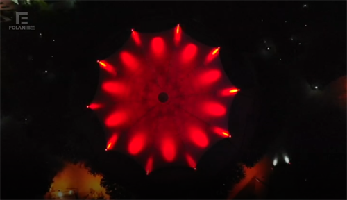 陜西榆林市委會(huì)議中心膜結(jié)構(gòu)項(xiàng)目,佛蘭空間2020年完工項(xiàng)目。采用進(jìn)口PVDF膜材,跨度50M,面積約1962.5平方米,鋼結(jié)構(gòu)為桁架結(jié)構(gòu)形式。項(xiàng)目設(shè)置有10LED泛光燈,夜晚猶如含苞待放的“水蓮花”,為市委增加了一道靚麗的風(fēng)景線。