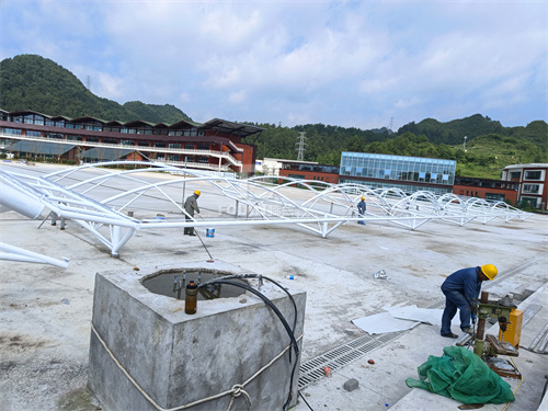 從設(shè)計(jì)圖深化-備料-鋼結(jié)構(gòu)除銹上底漆-放樣-板件激光加工-號(hào)料-組合焊接-試裝-校核尺寸-整體焊接-中間漆及面漆-吊裝-加焊與油漆修補(bǔ),再到膜的制作安裝:復(fù)測(cè)尺寸-繪制裁剪圖-膜材裁剪-膜片熱合制作-打包-運(yùn)輸-現(xiàn)場(chǎng)膜面展開(kāi)-膜吊裝-膜安裝。一道道施工程序,你們兢兢業(yè)業(yè),配合默契,利用鋼結(jié)構(gòu)和膜材,建造了一個(gè)個(gè)曲線優(yōu)美造型獨(dú)特的膜結(jié)構(gòu)建筑。