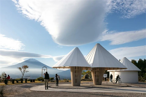 若你們想去日本,可以去誓言之丘公園觀賞展望臺涼亭,建筑采用木梁和木柱,就像一把傘,靈感來自富士山拋物線狀山脊。木材提供靈活性,而鋼材堅硬牢固。太陽穿過PTFE薄膜屋頂,給亭子帶來溫暖。