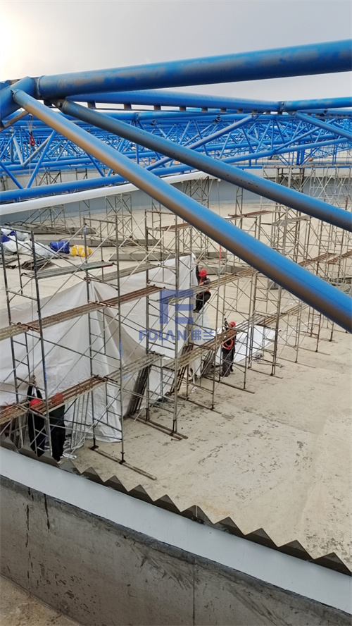 福建某污水池加蓋項(xiàng)目,包含4個(gè)直徑60米的初沉池和2個(gè)直徑36米的污泥濃縮池,膜安裝面積達(dá)16000多平方米。