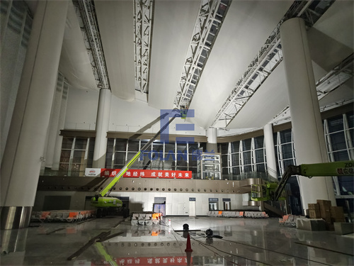 該工程位于東莞市虎門鎮(zhèn)白沙村,是東莞唯一的高鐵、城際、地鐵三軌合一的交通樞紐,被定位為“東莞新地標(biāo),灣區(qū)新門戶”。項(xiàng)目由中鐵參與建設(shè),佛蘭空間膜結(jié)構(gòu)負(fù)責(zé)其南北站房的室內(nèi)軟膜天花吊頂安裝工程。