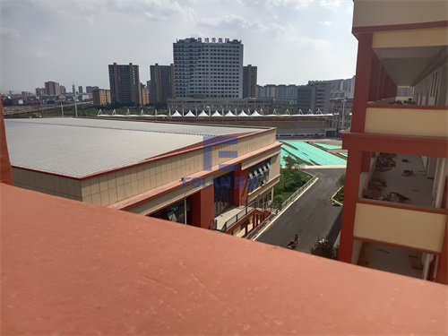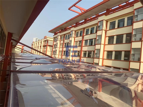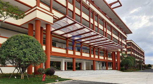 ETFE,質(zhì)輕,自潔性好,透光率高,已在很多建筑翻新時(shí)替代了厚重的玻璃材料。陸良北辰中學(xué)新校區(qū)領(lǐng)導(dǎo),綜合玻璃和ETFE的優(yōu)劣勢后,在信息樓、教學(xué)樓及會堂,都建造了ETFE長廊,膜面積達(dá)1500平方米。