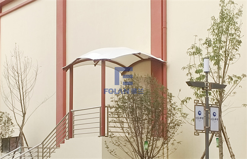 除了音體館門頭,該校報(bào)告廳2側(cè)及會堂后側(cè)出口也建造了膜結(jié)構(gòu)門頭。