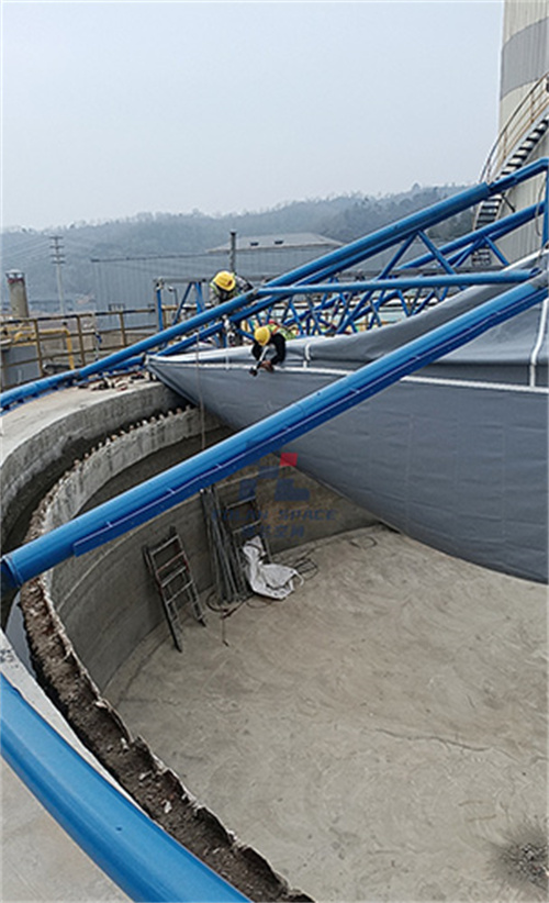 為煥發(fā)污水池的新生,九江污水池的管理者們決定進(jìn)行一場(chǎng)徹底的改造。他們拆除了陳舊的鋼結(jié)構(gòu)棚子,將半橋升級(jí)為全橋,并選擇一種創(chuàng)新的方案——污水池反吊膜加蓋。
