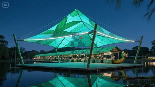 3、城市地標(biāo):巨型膜結(jié)構(gòu)“懸浮粽”藝術(shù)裝置,夜晚變色致敬屈原詩(shī)篇。