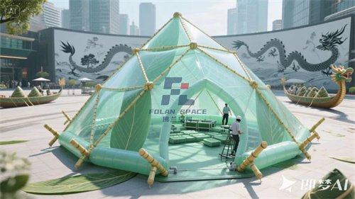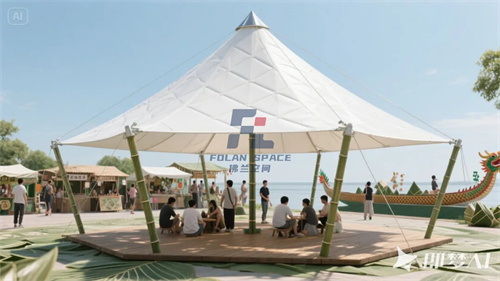 五月的風(fēng)裹挾著粽香,龍舟的鼓點(diǎn)喚醒盛夏。端午節(jié)不僅是文化的傳承,更是匠心的延續(xù)。今年,佛蘭空間以「膜」為筆,將千年傳統(tǒng)與現(xiàn)代科技糅合成一場(chǎng)空間藝術(shù)的盛宴——用輕盈的膜結(jié)構(gòu),為城市編織遮風(fēng)避雨的“粽葉”,為未來(lái)書寫“龍舟競(jìng)渡”的篇章。