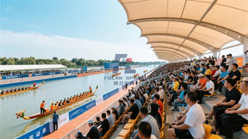 2025年深圳市觀瀾區(qū)龍舟賽,現(xiàn)場(chǎng)不僅有膜結(jié)構(gòu)觀賽區(qū),還有膜結(jié)構(gòu)遮陽(yáng)傘膜,烈日下體感能降溫8℃,由此看來(lái),膜結(jié)構(gòu)在龍舟賽事上發(fā)揮著無(wú)比重要的作用。