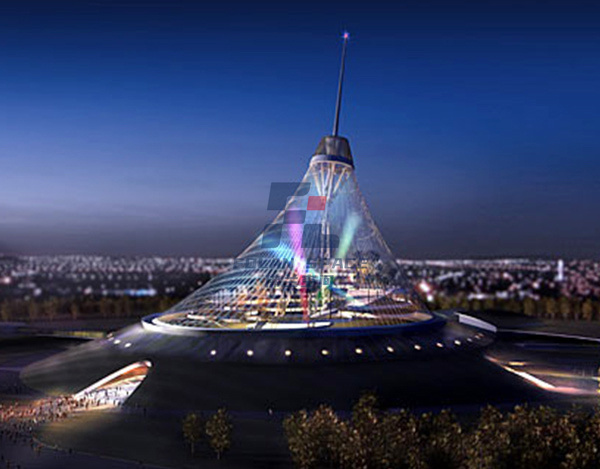 材料選用ETFE膜材,該 娛樂中心結(jié)構(gòu)由索網(wǎng)結(jié)構(gòu)支撐、ETFE氣枕構(gòu)成,零售、餐飲、娛樂以及停車等建筑分置在臺(tái)階式植被平臺(tái)上。