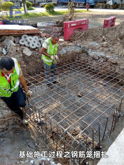 測量好用白灰做標(biāo)記,挖土采用反鏟挖掘機(jī)開挖,開挖尺寸比基礎(chǔ)尺寸每邊各留出300mm工作面,作為側(cè)面支模的位置,人工輔助修坡修底,挖出的土立即運(yùn)出場外。