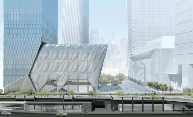 "TheShed"位于美國紐約的哈德遜城市廣場,該建筑有一個120英尺的伸縮式外殼。