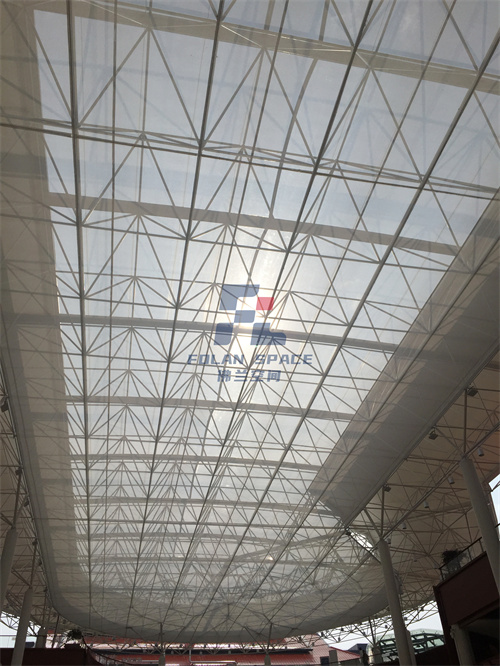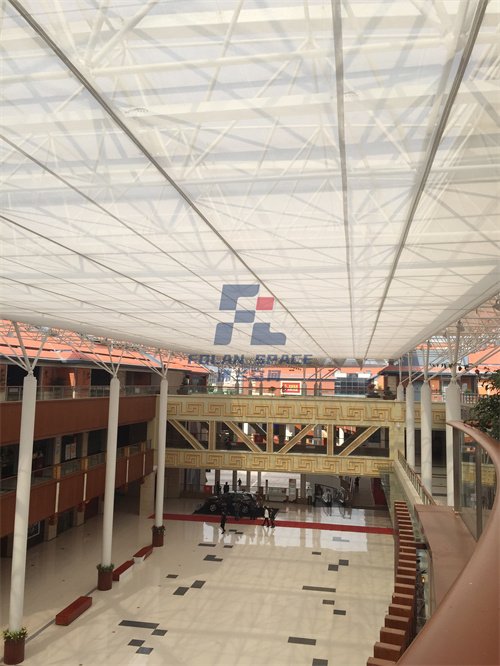 2019年,佛蘭空間在建造福建開(kāi)元盛世廣場(chǎng)屋頂時(shí),就使用了PTFE網(wǎng)格膜,保持室內(nèi)通透明亮又不眩暈。
