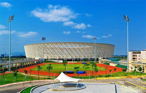 惠州奧林匹克體育中心是國內(nèi)第一個立面大面積采用網(wǎng)格膜的體育場,立面采用PTFE網(wǎng)格膜,約2萬平方米。