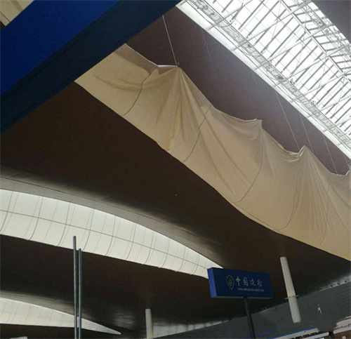 為營造一個陰涼的室內(nèi)環(huán)境,港珠澳大橋安檢大廳,運(yùn)用PTFE網(wǎng)格膜弱化太陽直射,起到遮陰效果。