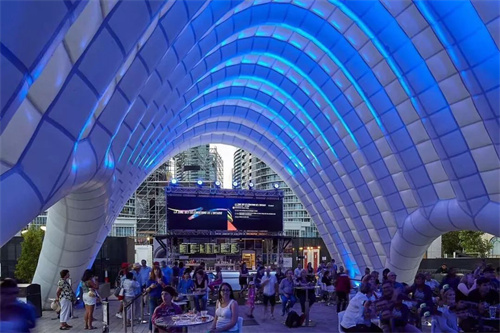它們完全由膜結(jié)構(gòu)組成,不含鋼結(jié)構(gòu),充分利用可充氣結(jié)構(gòu)的極限。在38天的運(yùn)動(dòng)會(huì)期間,展館舉辦了500多場(chǎng)現(xiàn)場(chǎng)表演和演講,吸引了超過(guò)40萬(wàn)的參觀者。