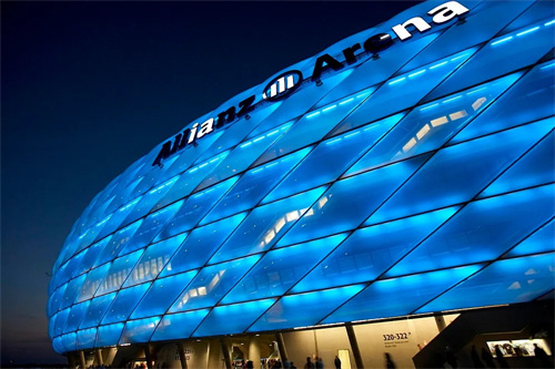 ◆ 慕尼黑安聯(lián)球場(chǎng):動(dòng)態(tài)變色氣枕外立面