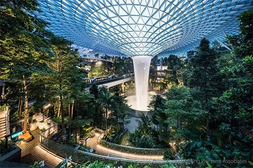 星耀樟宜機(jī)場(chǎng)(Jewel)是一個(gè)世界級(jí)多面相生活方式的據(jù)點(diǎn),由花園和景點(diǎn)、零售和餐飲、酒店以及機(jī)場(chǎng)運(yùn)營(yíng)設(shè)施等眾多項(xiàng)目組成。它擁有標(biāo)志性的玻璃和鋼結(jié)構(gòu)外墻,總建筑面積達(dá)135,700平方米,是世界最大室內(nèi)瀑布與穹頂氣枕結(jié)構(gòu),營(yíng)造熱帶雨林氛圍。