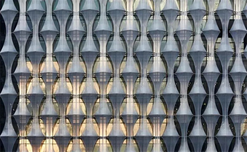 ETFE膜結(jié)構(gòu)外墻由四層ETFE制成,共有57個(gè)氣枕,使用定制的白色墨水打印圖案和氣動(dòng)裝置來(lái)控制進(jìn)入建筑物的透光量,節(jié)約成本的同時(shí),還能增加建筑物的舒適度。