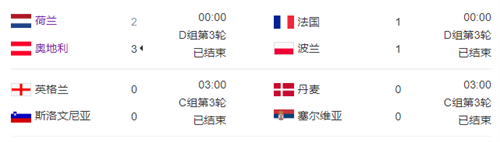 D組中,法國隊1-1與波蘭隊戰(zhàn)平,荷蘭隊2-3爆冷負于奧地利隊,奧地利隊力壓法荷二強獲得小組頭名,法國、荷蘭分列二三位出線。
