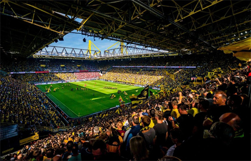 多特蒙德威斯特法倫球場,這座位于德國多特蒙德市的足球場,可以容納66,000名觀眾,是多特蒙德足球俱樂部的主場。