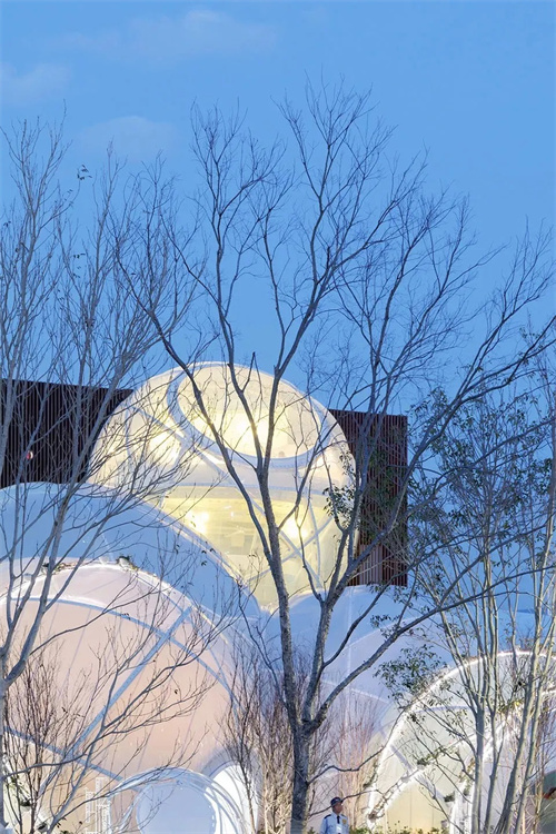 瑞士館的設(shè)計(jì)靈感源自于自然,旨在展示人類與自然和諧共存的美好愿景。整個(gè)展館由五個(gè)PVC與ETFE構(gòu)成的雙層膜結(jié)構(gòu)充氣輕質(zhì)球體組成,這些球體相互連接,仿佛是大自然中的一顆顆珍珠,被巧妙地嵌入了一片綠意盎然之中。這種設(shè)計(jì)不僅美觀大方,更體現(xiàn)了瑞士對(duì)于環(huán)保和可持續(xù)發(fā)展的深刻理解。