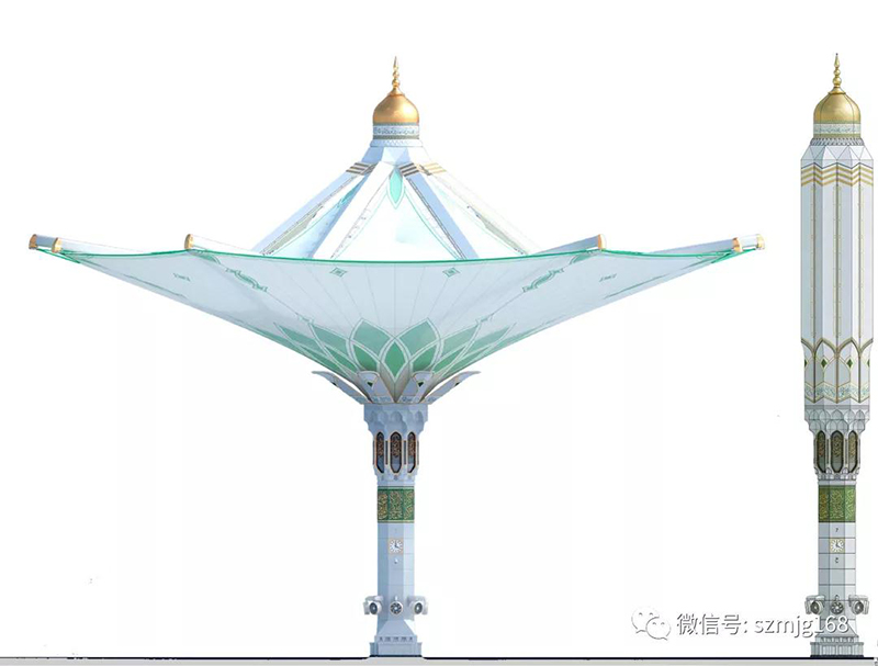 另外在沙特的吉達(dá)機(jī)場(chǎng),也設(shè)計(jì)了兩把方形遮陽(yáng)傘。