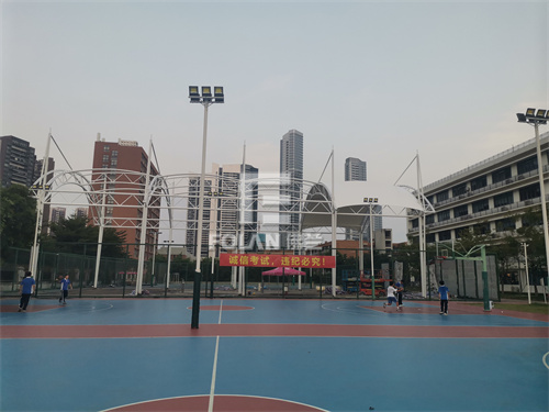 同時(shí),球場(chǎng)采用膜結(jié)構(gòu)蓋頂,又能很好地遮陽(yáng)擋雨,便于學(xué)校師生隨時(shí)隨地開心自在地打球。