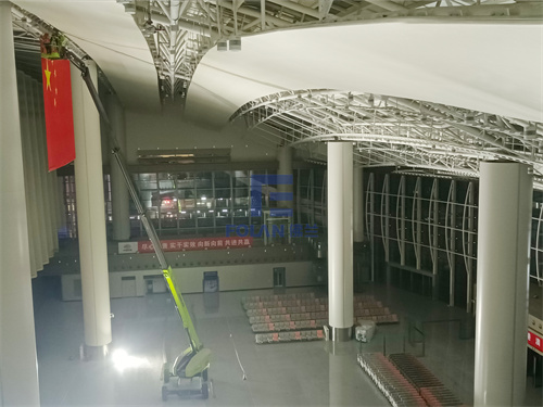 首先,100米長PTFE軟膜室內(nèi)吊頂需要精密的結(jié)構(gòu)設(shè)計,需采用合理的支撐結(jié)構(gòu)和連接方式,才能防止結(jié)構(gòu)松動或者變形等問題。