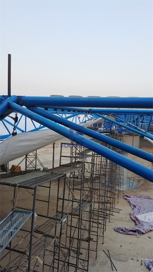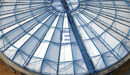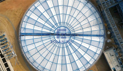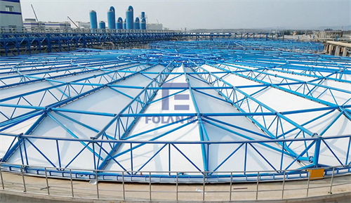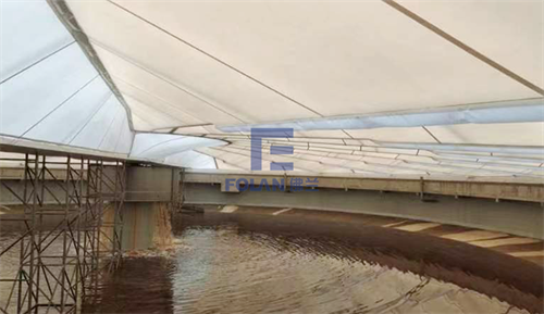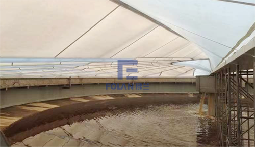 福建某污水池加蓋項(xiàng)目,包含4個(gè)直徑60米的初沉池和2個(gè)直徑36米的污泥濃縮池,膜安裝面積達(dá)16000多平方米。