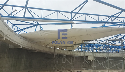 經(jīng)設(shè)計(jì)核算,福建某污水池加蓋項(xiàng)目,采用海德斯白色PVDF膜材,抗腐蝕抗酸堿,抗拉強(qiáng)度約8000N/cm。