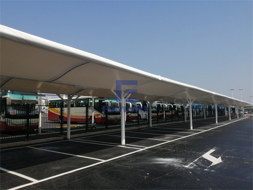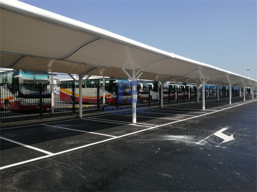 為養(yǎng)護集團大巴車,也為給員工提供一個可遮陽擋雨的上下車場地,深圳北行車公寓興建了一個膜結構停車棚。