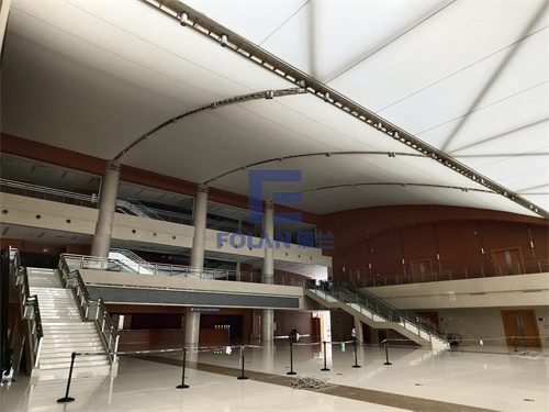 考慮到會議中心的吸音性與自潔性,在重新更換膜材時,佛蘭公司采用了PTFE內(nèi)膜。PTFE內(nèi)膜有著更舒適的光學(xué)性能及更好的自潔性、吸音性和安全性,既能營造舒適明亮的會議中心室內(nèi)環(huán)境,還能起到美化和提升室內(nèi)逼格的作用!