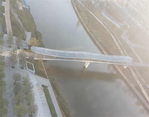 前段時間,佛蘭空間在深圳新竣工了一座獨特的ETFE人行天橋。這座天橋以輕盈的ETFE暗透明鍍點膜材鋪設于潔白的鋼骨架之上,整體結(jié)構(gòu)輕盈飄逸,橫亙于河流之上,不僅為市民提供了更加舒適、美觀、安全的通行環(huán)境,還為城市增添了一道亮麗的風景線。