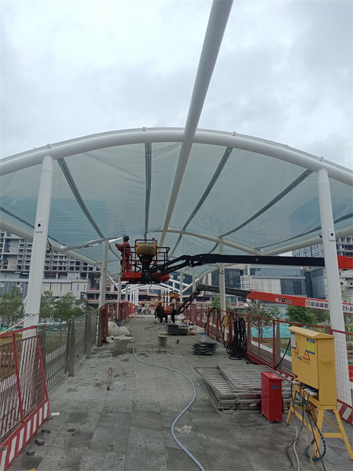 在施工過程中,佛蘭空間項目施工人員認真對待每一道施工工序,從鋼構(gòu)的打磨除銹,噴漆,預拼裝和吊裝,再到膜材的吊裝和張拉固定,每個環(huán)節(jié)都一絲不茍,嚴格按照設計要求和相關標準進行施工,確保了工程質(zhì)量和進度。
