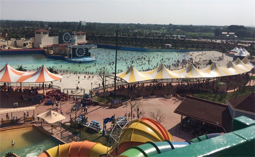 如今,很多主題樂園里的游戲場所,都會(huì)在游樂設(shè)施的上方設(shè)置膜結(jié)構(gòu)頂篷,既可起到遮陽的作用,又能增強(qiáng)游樂設(shè)施的視覺效果。下面這2個(gè)主題公園和水上樂園,就恰如其分地運(yùn)用膜結(jié)構(gòu)發(fā)揮其遮陽擋雨效果。