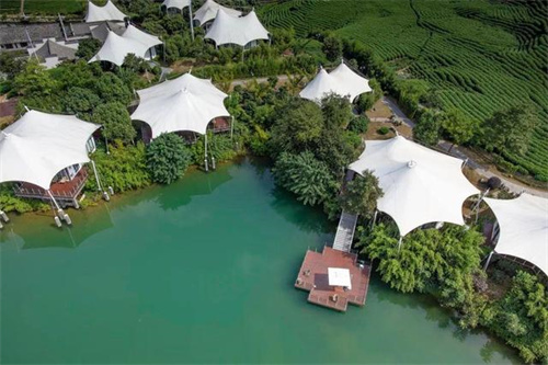 膜結(jié)構(gòu)憑其輕巧獨(dú)特的造型,已廣泛用于休閑旅游場景,比如常見的膜結(jié)構(gòu)大門入口,過道、景觀小品、停車棚,帳篷酒店,餐廳、表演舞臺(tái)、游戲場所等,這些膜結(jié)構(gòu)不僅為游客提供休息、觀景的舒適場所,還能自成一景,供游客欣賞。