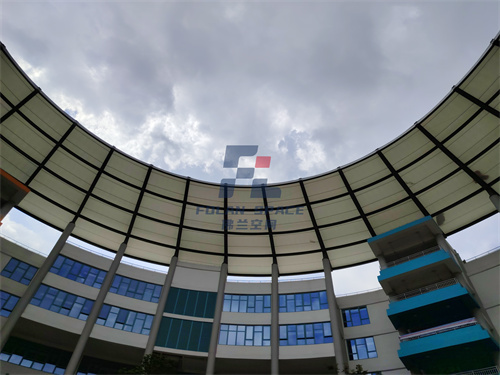 該學(xué)校天幕使用的是PVDF高透光膜材,無論白天還是夜晚,都可以透過它看到天空,是名副其實(shí)的天幕。這種高透光性使得天幕在白天能夠提供充足的自然光照,而在夜晚則可以與燈光結(jié)合,營造出絢麗的視覺效果。