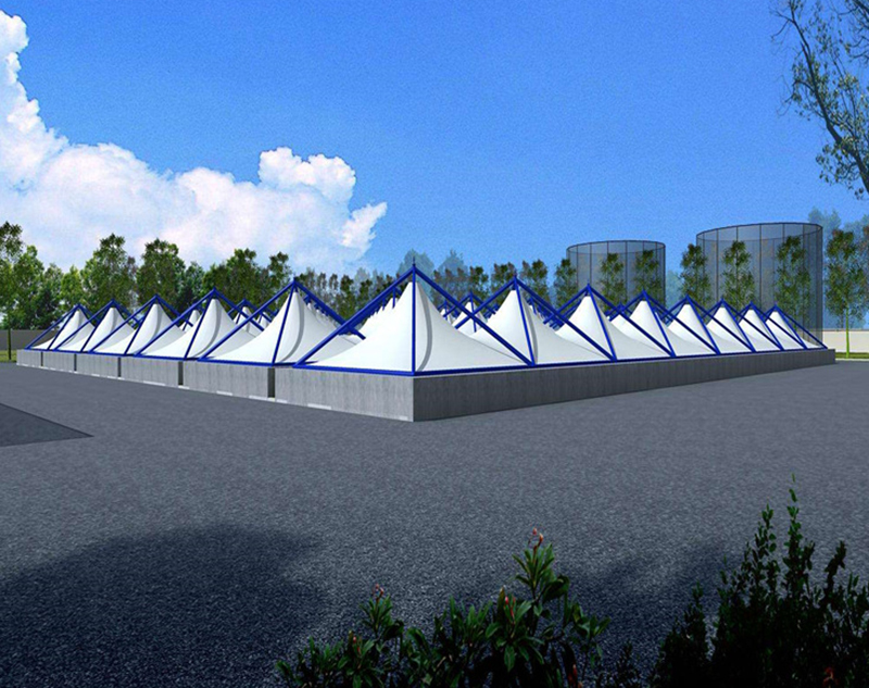 反吊膜結(jié)構(gòu)比傳統(tǒng)污水池加蓋除臭效果明顯,蕞主要的兩點(diǎn)原因一是結(jié)構(gòu)新穎,采用與傳統(tǒng)結(jié)構(gòu)相反的設(shè)計(jì)理念,將鋼結(jié)構(gòu)至于膜材外層,從而提高了鋼結(jié)構(gòu)的使用壽命;二是采用抗腐蝕性能高的氟碳纖維膜作為膜加蓋的常用材質(zhì),二者結(jié)合,從很大程度上提高了反吊膜結(jié)構(gòu)的使用價(jià)值,提高了整體結(jié)構(gòu)性能。下面介紹下反吊膜結(jié)構(gòu)設(shè)計(jì)主要包括的內(nèi)容。