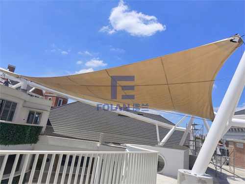 ▲佛蘭空間項目:廈門幼兒園扇形中庭膜結(jié)構(gòu)工程(PTFE膜材)