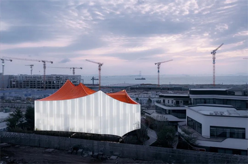 建筑師在這個項(xiàng)目中選用了28%和50%不同開孔率的PTFE網(wǎng)格膜材來達(dá)到半透明的效果,呈現(xiàn)一種欲語還休的親和力。