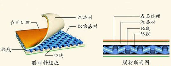 基布一般由高強度聚酯纖維(PVC類膜材)或玻璃纖維(玻璃纖維類膜材)編織而成。