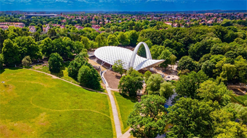 什切青夏季劇院(SummerTheatre,Szczecin)位于波蘭什切青市的Kasprowicz公園內(nèi),包括混凝土拱門在內(nèi)的原始結(jié)構(gòu)由ZbigniewAbrahamowicz設(shè)計(jì),于1976年開(kāi)放。2016年,建筑師FlanaganLawrence贏得了設(shè)計(jì)競(jìng)賽,設(shè)計(jì)內(nèi)容包括位于什切青Kasprowicz公園的新屋頂和原有圓形劇場(chǎng)的翻新改造。