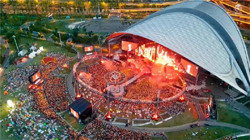 成都露天音樂(lè)公園占地31.77萬(wàn)平方米,總建筑面積約3.4萬(wàn)㎡。全園分布了多個(gè)規(guī)模不同、主題不同的音樂(lè)表演區(qū)。位于公園南北方向轉(zhuǎn)折的中心位置,便是可容納4萬(wàn)余人戶外觀演的主舞臺(tái)。