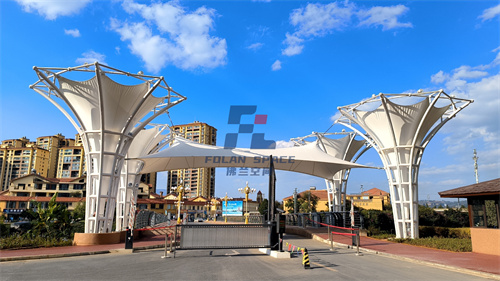 云南高檔小區(qū)膜結(jié)構(gòu),于2023年8月開(kāi)始動(dòng)工,11月中旬完工。該建設(shè)項(xiàng)目包含兩處膜結(jié)構(gòu)大門和多處膜結(jié)構(gòu)停車棚。這些膜結(jié)構(gòu)以其獨(dú)特的設(shè)計(jì)和精美的外觀吸引了行人的關(guān)注,他們紛紛前來(lái)了解樓盤情況,從而促進(jìn)了云南房產(chǎn)業(yè)的發(fā)展。