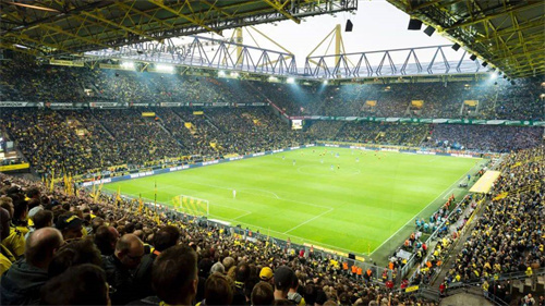 多特蒙德威斯特法倫球場,這座位于德國多特蒙德市的足球場,可以容納66,000名觀眾,是多特蒙德足球俱樂部的主場。