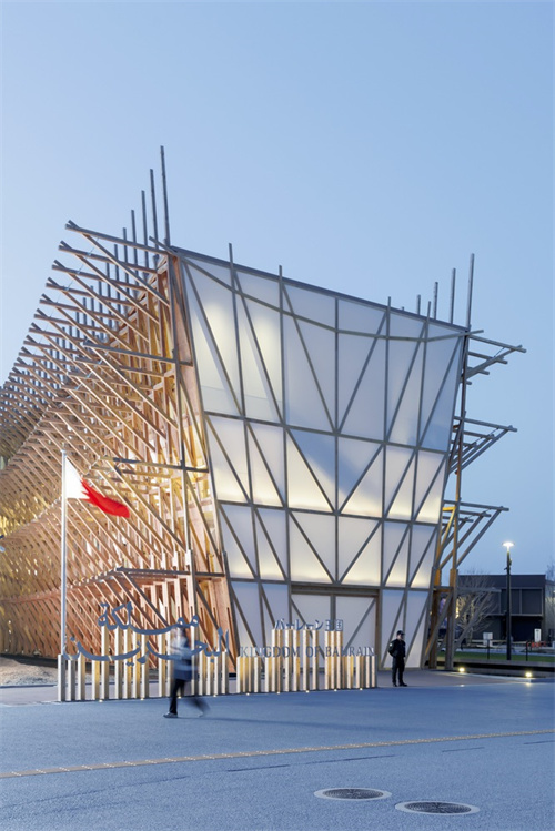 展館設(shè)計(jì)融合阿拉伯航海文化與日本木構(gòu)技藝,體現(xiàn)跨地域文化交流,如木材選用日本雪松、膜材技術(shù)結(jié)合現(xiàn)代工程。通過低環(huán)境影響設(shè)計(jì),巴林館成為循環(huán)建筑典范,回應(yīng)全球氣候挑戰(zhàn),并傳遞島國對海平面上升等環(huán)境議題的關(guān)注。